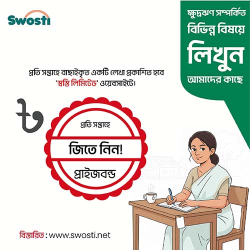 – প্রতি সপ্তাহে নির্বাচিত সেরা লেখা স্বস্তি লিমিটেড ওয়েবসাইটে প্রকাশ করা হবে এবং  লেখক পাবেন ৫০০ টাকা সমমূল্যের প্রাইজবন্ড সম্মানী।